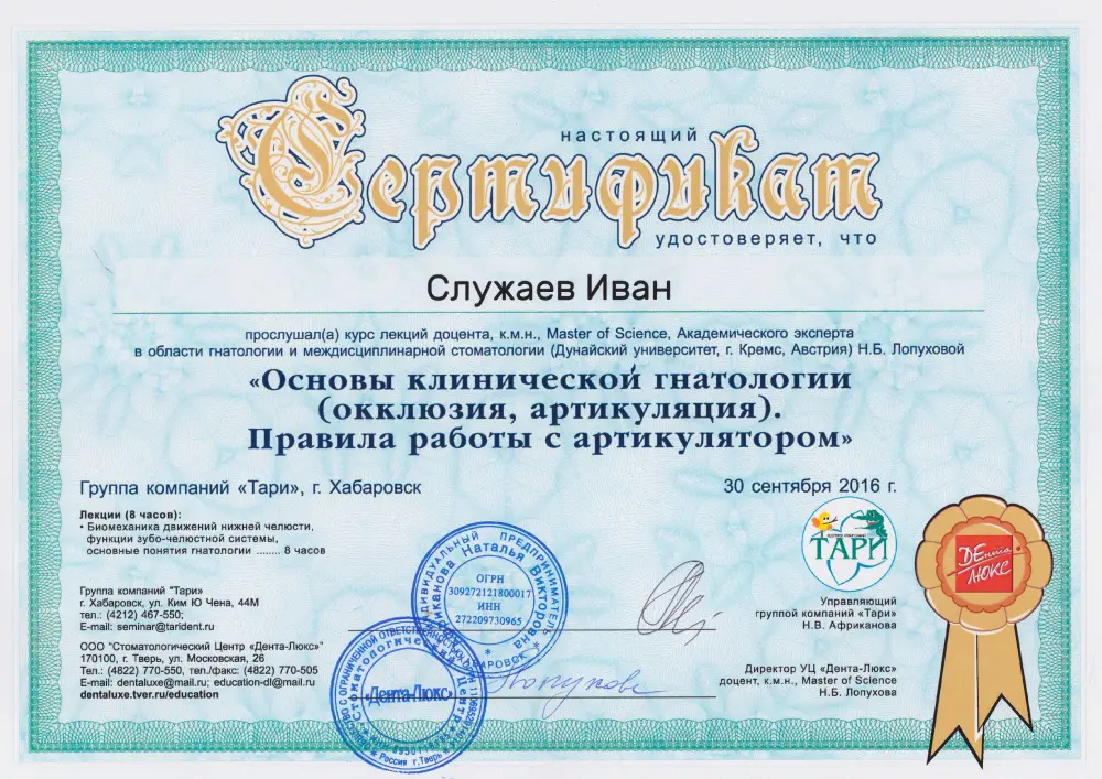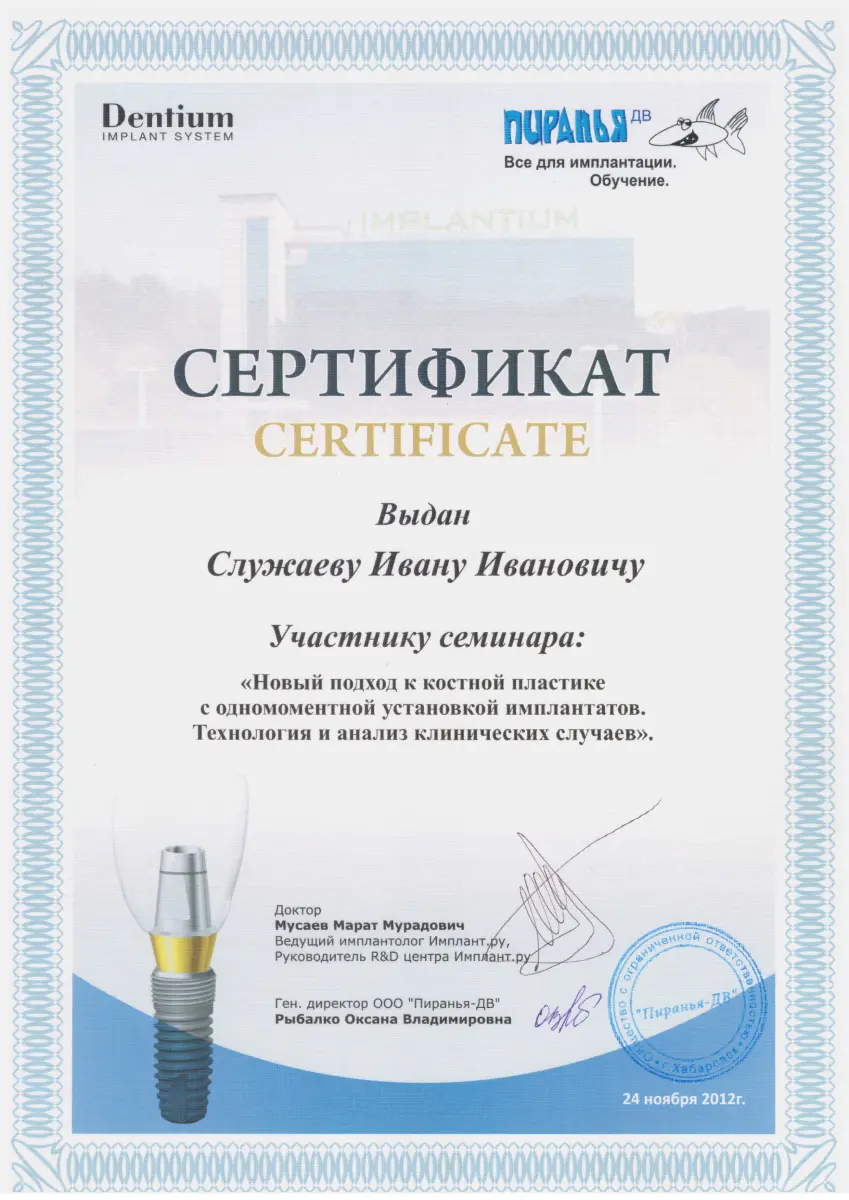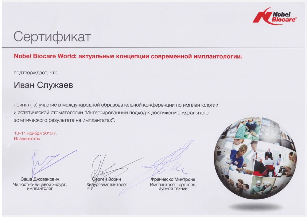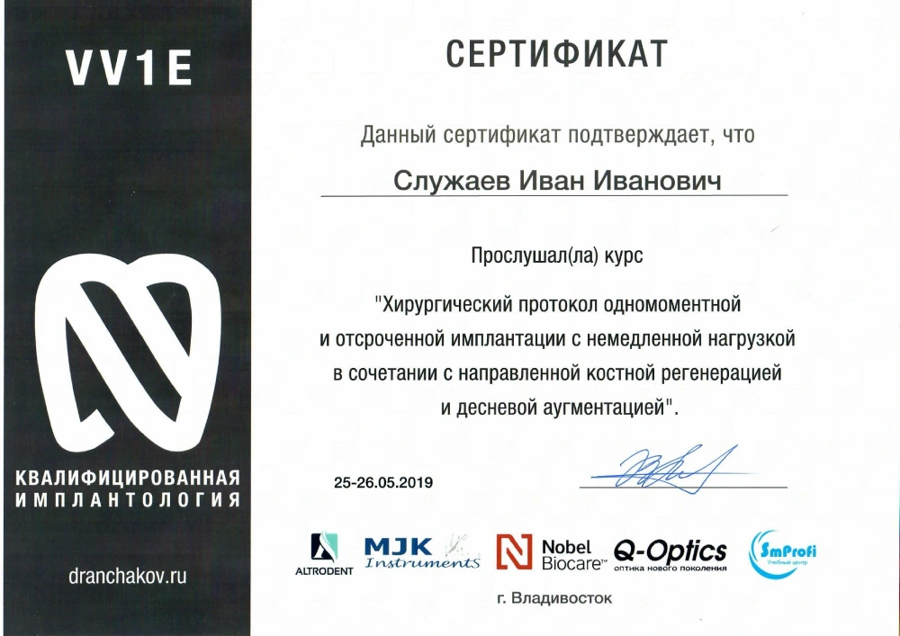 Регулярно повышает квалификацию (в т.ч. по хирургическим протоколам имплантации, цифровому планированию и работе с системами Nobel Biocare).