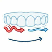 Во время выравнивания зубов элайнерами меняются контакты зубов (как они смыкаются), и иногда лицевым мышцам нужно время на перестройку. Наша задача – сделать так, чтобы система адаптировалась мягко, без лишней перегрузки.
